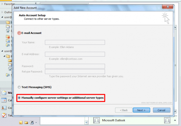 Logo após selecionar a configuração de uma nova conta, escolha a opção de configurar manualmente os ajustes da conta.