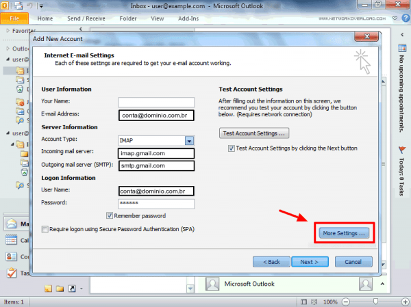 Após preencher estes dados, acesse a opção “More Settings” (Mais Configurações);